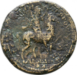 Confirmation required: see below on questions of authenticity. It looks as if Men is holding a trident (?).