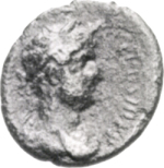 laureate and cuirassed bust of Hadrian, right, with paludamentum, seen from front