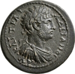 laureate and cuirassed bust of Hadrian, right, with paludamentum, seen from front