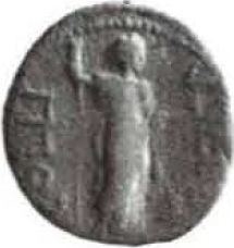 Aphrodite, standing facing, head right, resting on sceptre with right hand, holding an apple in left