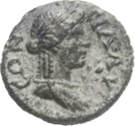 laureate and draped bust of Apollo, right; in front, laurel-branch