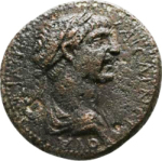 Apollo Sidetes standing facing, head left, holding pomegranate in his extended right hand, left resting on sceptre; (to right, laurel branch)