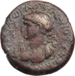 laureate bust of Trajan, with paludamentum on left shoulder, viewed from front, left