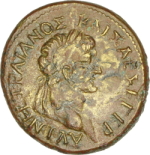 Obverse inscription ΑΥΤ ΝΕΡ ΤΡΑΙΑΝΟΣ ΚΑΙΣΑΡ ΣΕ ΓΕΡ