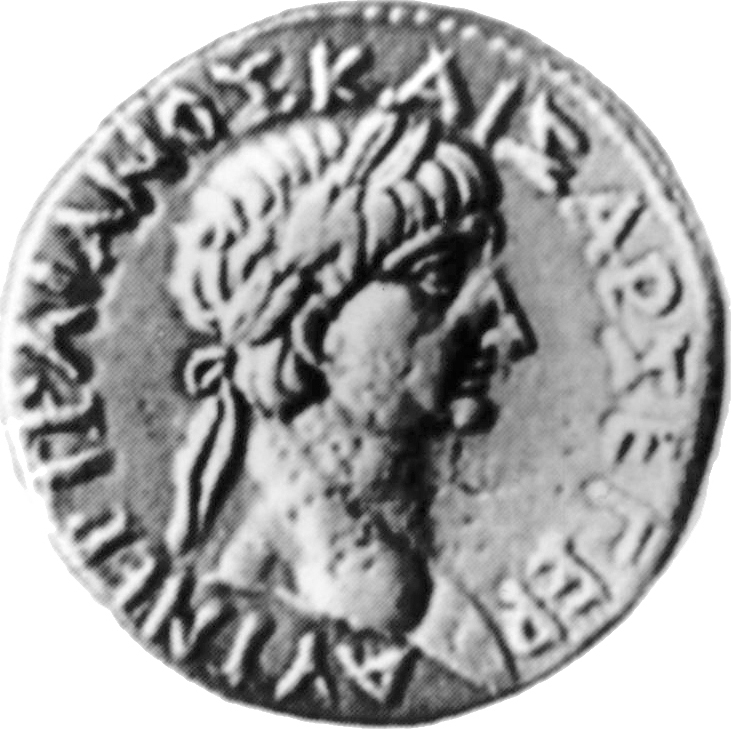 laureate head of Trajan, right