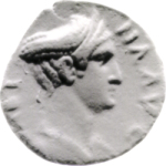 draped bust of Sabina, right, hair coiled and piled on top of head above triple stephane