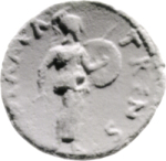 Pallas Athena standing right, holding advanced spear in right hand and shield on left