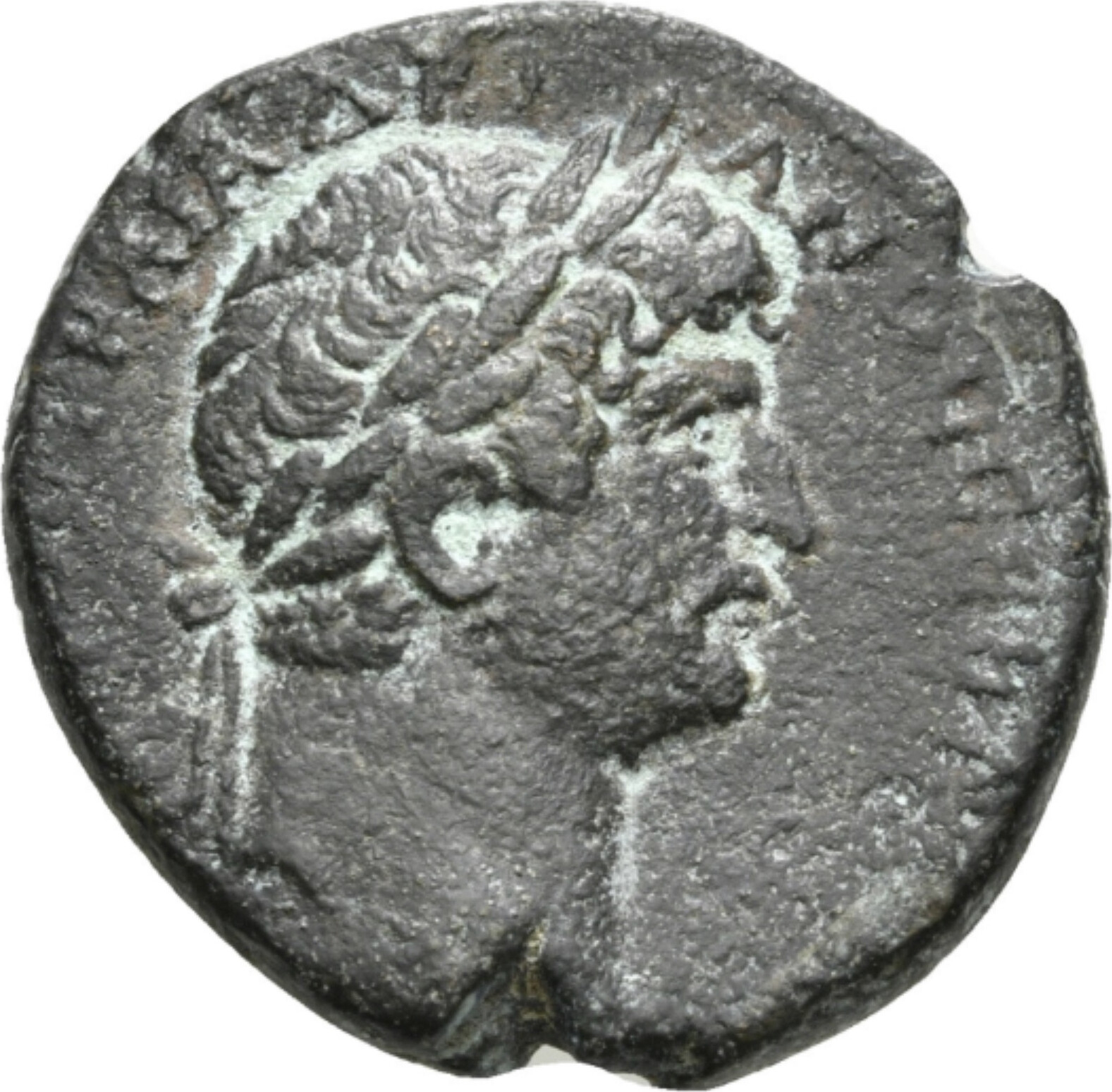 ΑΥΤΟ ΚΑΙϹ ΤΡΑΙΑ ΑΔΡΙΑΝΟϹ ϹΕΒΑϹΤΟϹ; crescent in left field