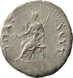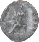 Eirene seated left, holding corn ears in right hand and sceptre in left