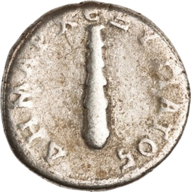 laureate, draped and cuirassed bust of Trajan, right, seen from rear |