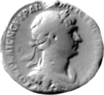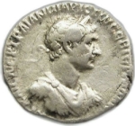 laureate, draped and cuirassed bust of Trajan, right, seen from front |