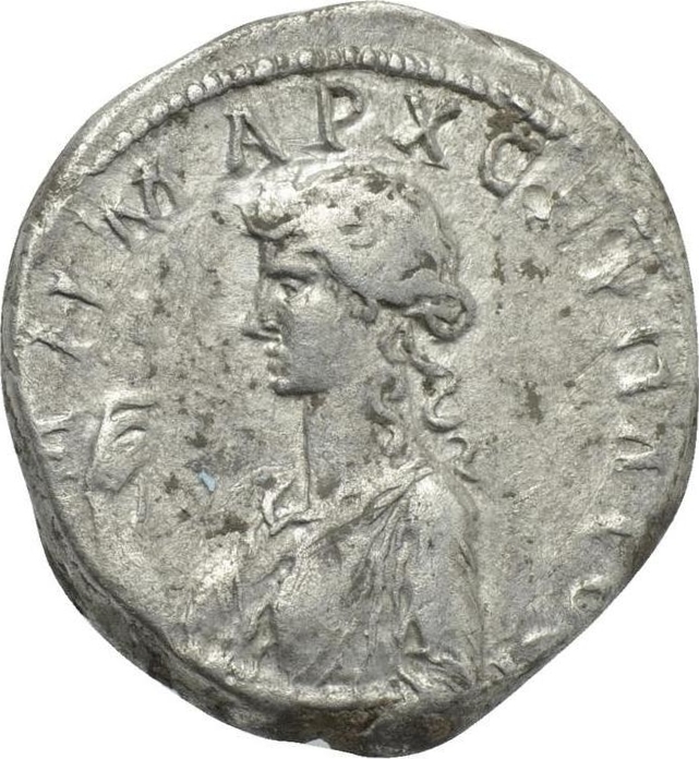 laureate, draped and cuirassed bust of Trajan, right, seen from front |