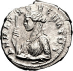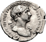 laureate head of Trajan, right, with drapery on left shoulder |