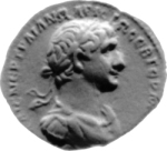 laureate, cuirassed and draped bust of Trajan, right, seen from front |