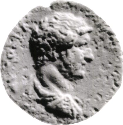 bare-headed and draped bust of Hadrian, right, seen from rear