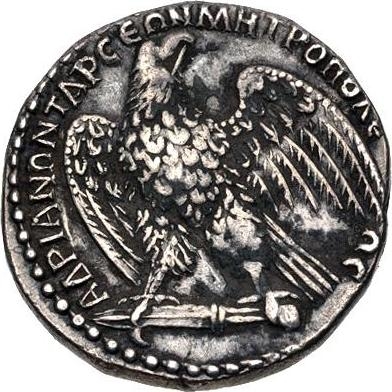 Emperor Caesar Trajan Hadrian Augustus, Olympian, father of the fatherland, son of the divine Trajan Parthicus, grandson of the divine Nerva |