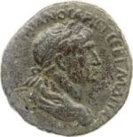 laureate and cuirassed bust of Trajan, right, with paludamentum, seen from rear |