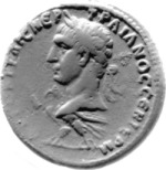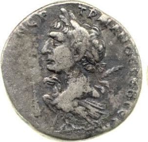 laureate head of Trajan, left, above eagle st. left, wings folded; in left field, club; in right field, palm branch projecting from Trajan’s head