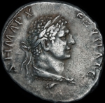 laureate head of Trajan, right, drapery on left shoulder, above eagle standing right; in right field, club |