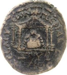 sacred stone of Zeus Kasios with fillet attached within shrine consisting of four pillars supporting a pyramidal roof surmounted by an eagle |