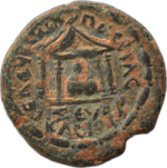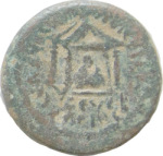 | Reverse design | sacred stone of Zeus Kasios with fillet attached within shrine consisting of four pillars supporting a pyramidal roof surmounted by an eagle |