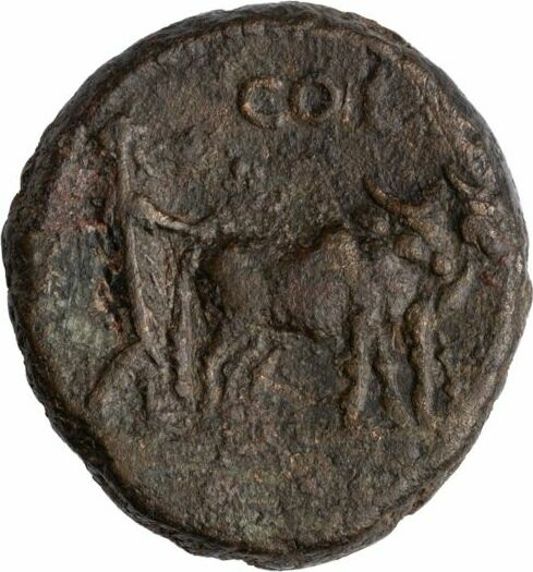 The obv. of 2 reads [ ]NER TRAIANO – P AVG GER[M ] (sic);The O of TRAIANO is very occasionally omitted (S 707; perhaps also 708-10). The G of AVG is sometimes retrograde. The rev. inscription is only COL BER on some specimens (S 677-686, 691-703, 712). Beirut excavations = Butcher, Small Change nos. 417-20, including specimens of 3841-3842