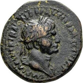 laureate head of Trajan, right, with drapery on shoulder |