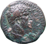 Tyche-Astarte standing, left, on prow with standard and aphlaston; in left field, incense altar; in right field, dove standing left |