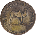 laureate and cuirassed bust of Trajan, right, with paludamentum, seen from rear |