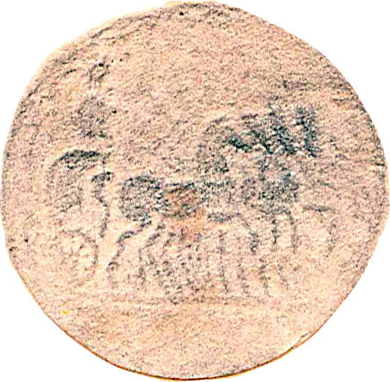 Emperor (Trajan) standing in quadriga, right, laureate-headed, wearing toga, holding eagle-tipped sceptre and branch
