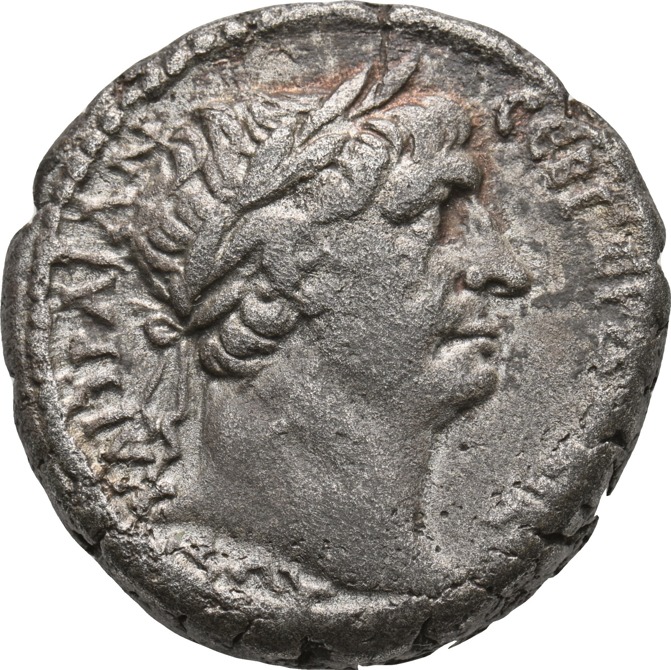 This coin has an unusual obv. inscription (ΑΥΤ ΚΑI ΤΡΑIΑΝ CƐΒ ΓƐΡ ΔΑΚIΚ), and is a unique tetradrachm for year 13 (though the same unusual inscription is found rarely on AE 33 coins: see below). From the illustration it could just about be Year 15, but the E of 15 is normally written as Ɛ. On the other hand there are some very rare tetradrachms for year 12, and one finds variants of obv. inscriptions on bronzes of year 12 (see above).