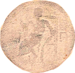 Zeus seated, left, holding sceptre and thunderbolt; to left, eagle
