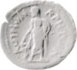 Asclepius standing facing, head left, his right hand resting on serpent-staff