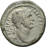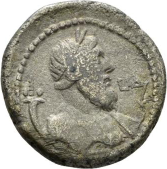 draped bust of Nilus, right, crowned with taenia and lotus-buds, at shoulder, reed; before, cornucopia