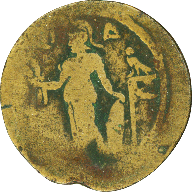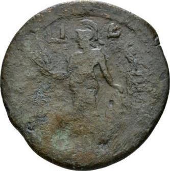 Athena standing, left, holding ears of corn and shield; to right, garlanded altar with owl