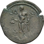 Hermes often holds the infant Dionysus; the small figure may perhaps be a genius (?). The figure is clear on the coin of year 13 (4412.9.