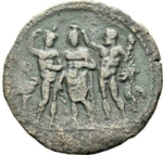 date and obv. illegible. ‘Sarapis in piede di fronte, porta modius; nella d. abbassata tiene un ramo, la s. avvolta nell’himation. A d. Herakles di fronte, nudo, guarda a s. incorona Sarapis, tiene in s. clava e pelle del leone; a s. Apollon? Di fronte, nudo la d. alla testa, la s. dietro il dorso; alla lui d. un grande candelabro accesso. (Data consunta)’. See previous note for the probable year