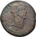 ‘Sarapis, busto di fronte posto sopra globo tenuto da due figure di Nike, una a d. l’altra a s., hanno le ale spiegate e tengono palm-brancha. Nel campo, LIE’. Fairly worn.
