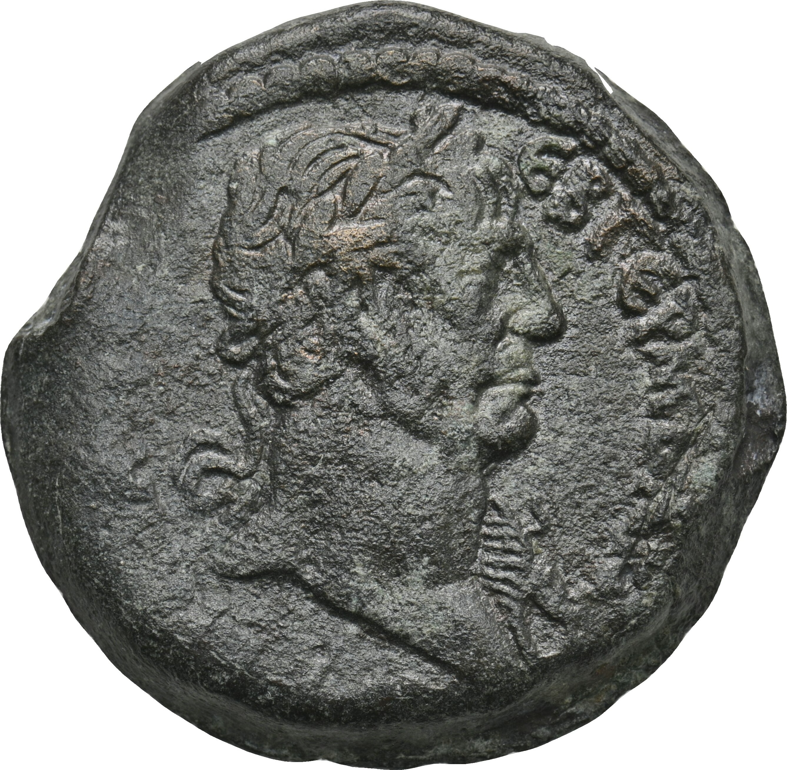 laureate bust of Trajan, right, nude and with aegis on left shoulder