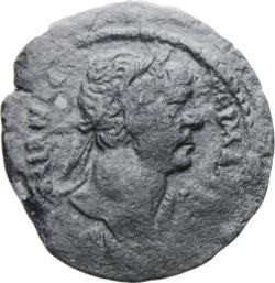 laureate bust of Trajan, right, nude and with aegis on left shoulder