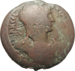 laureate half-length nude bust of Trajan, right, with aegis on, left, shoulder |