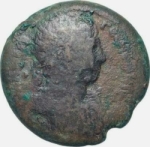 laureate half-length nude bust of Trajan, right, with aegis on, left, shoulder |