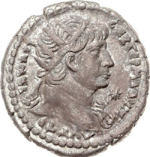 radiate head of Trajan, right, with aegis; star to right |