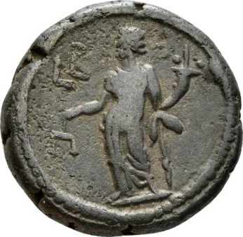Dikaiosyne standing facing, head left, holding scales and cornucopia
