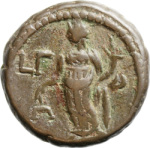 Dikaiosyne standing facing, head left, holding scales and cornucopia