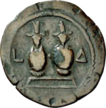 obv. inscription unclear, but perhaps includes [ ]ΟϹ - [ ], i.e the inscription used earlier in year 4