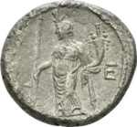 Isis standing facing, head left, holding sceptre and cornucopia