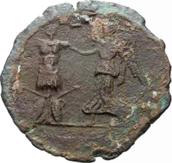 Reverse design trophy; to right, Nike advancing, left, holding palm-branch and wreath