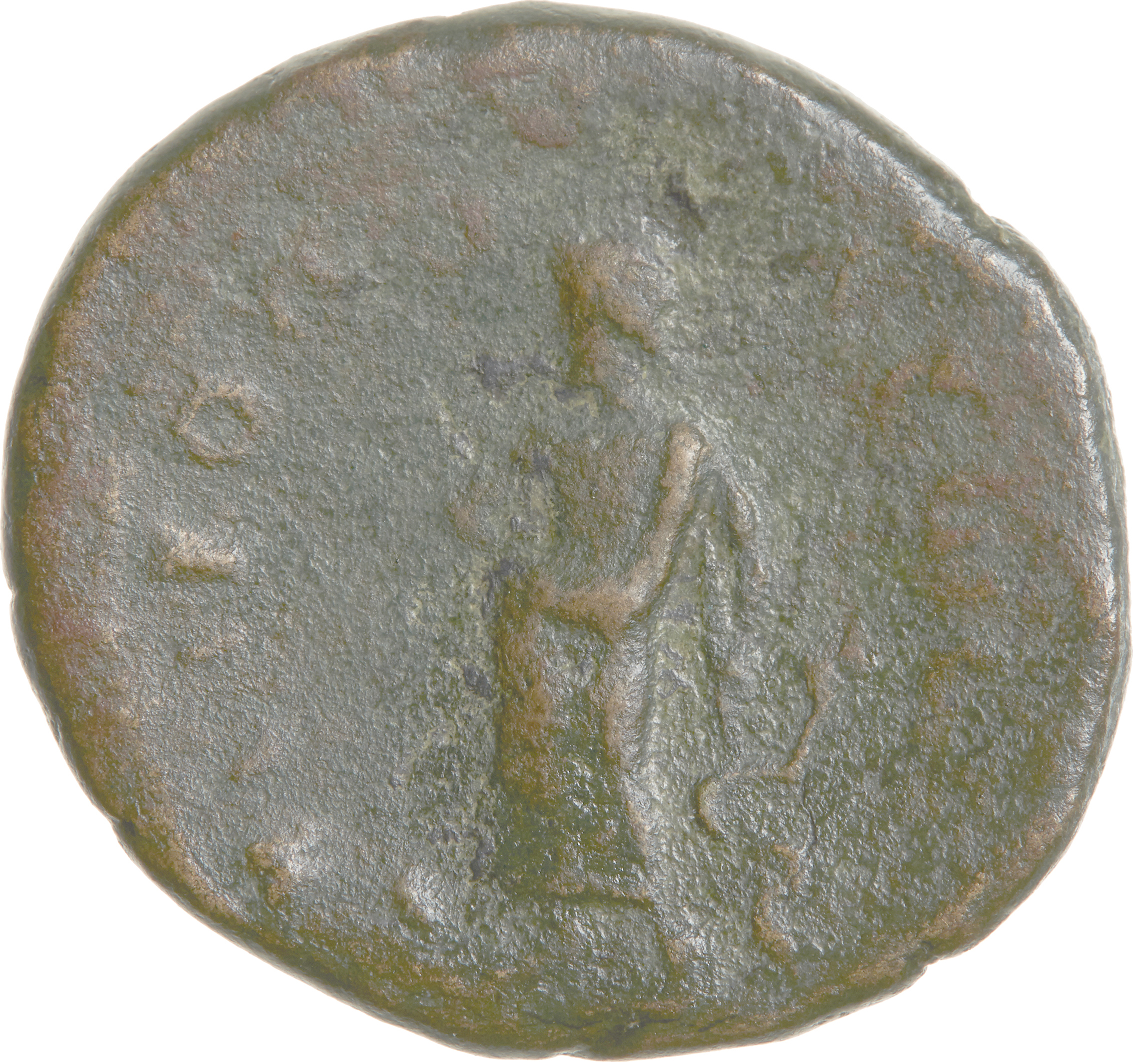 Asclepius standing left, his right hand on his hip, holding serpent-staff in left hand