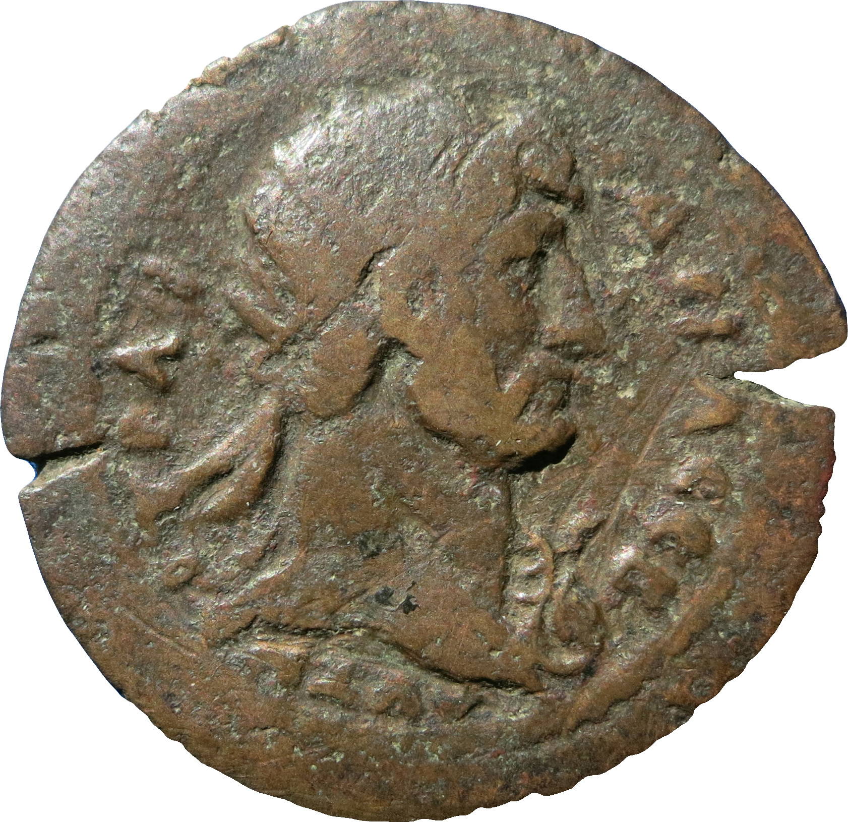 radiate head of Hadrian, right, drapery on left shoulder (and with aegis)